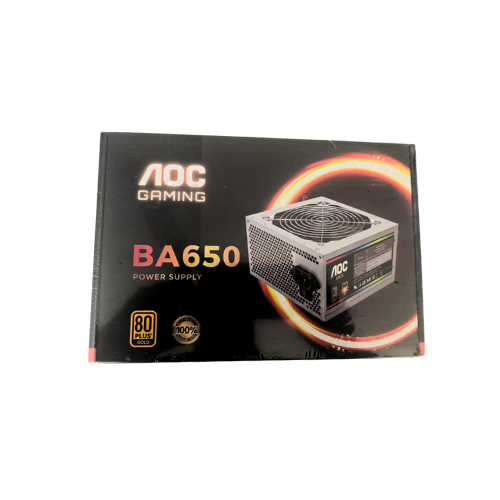 The AOC BA650 Power Supply in Grey is engineered to deliver powerful, stable, and energy-efficient performance for advanced gaming PCs and high-demand systems. Built on the ATX 2.53 platform, it supports an input voltage range of 100–240Vac and offers a continuous output of 650W, ensuring reliable power for modern graphics cards and multi-component setups. The PSU features Active PFC for enhanced electrical efficiency and includes an I/O switch for convenient operation. With 80 Gold Standard efficiency, the BA650 reduces energy loss and heat buildup, contributing to long-term durability and smooth performance. A 12 cm black cooling fan provides consistent airflow to maintain optimal temperatures during heavy workloads.
