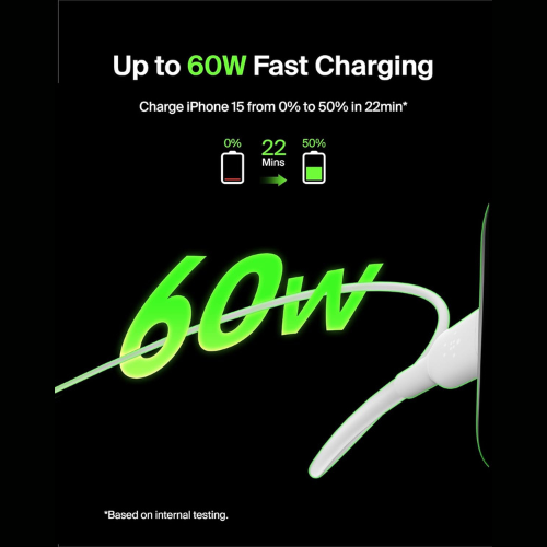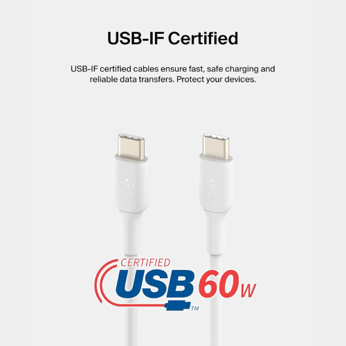 Belkin Type C to Type C Fast Charging Type C Cable, 60W PD, 3.3 feet (1 meter)- White