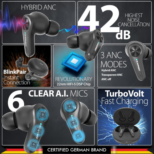 Blaupunkt BTW300 Platinum Hybrid ANC Moksha in Ear Earbuds (Matte Black)
