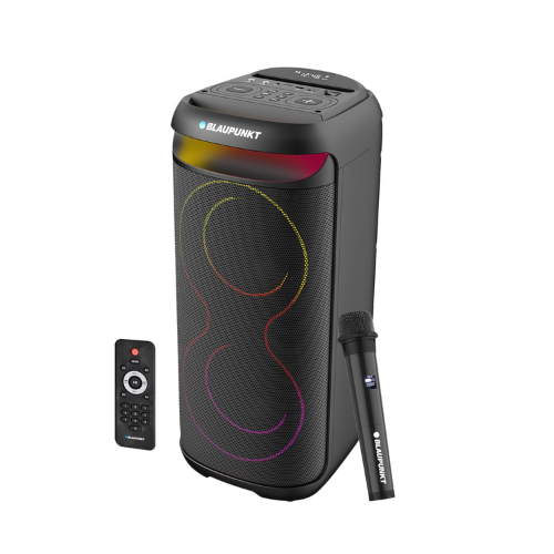 Blaupunkt Rock & Roll PS75 Pro 100W Wireless Bluetooth Party Speaker with Wireless Karaoke Mic, Remote Control- Black
