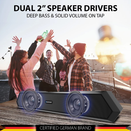 Blaupunkt SBA15 14W Bluetooth Soundbar, 1200 mAh Battery, AUX, Bluetooth, USB & TWS- Black