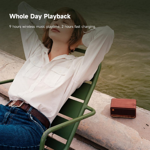 Edifier MP230 is a portable Bluetooth speaker that combines retro aesthetics with modern audio technology. Its design is inspired by vintage radios from the 1950s and 1960s, featuring a wooden enclosure and piano-style key buttons, offering both visual appeal and tactile satisfaction. The speaker is equipped with a 2600mAh high-capacity lithium-polymer battery, offering up to 10 hours of continuous playback on a single charge, making it suitable for outdoor travel and extended listening sessions. Connectivity options are versatile, including Bluetooth 5.0 for wireless streaming, as well as USB-C, AUX, and Micro SD card inputs, allowing users to play music from various sources.