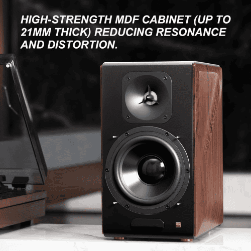 Edifier S3000MKII Premium 2.0 Speaker System in Brown is a high-fidelity audio solution designed for audiophiles seeking superior sound quality and versatile connectivity. This speaker system delivers a total RMS output of 256 watts, powered by dual 175W stereo PurePath™ Ultra-HD Class-D TI amplifiers. The S3000MKII offers a variety of input options, including Balanced XLR, Optical, Coaxial, USB Type-B, Line In, and Bluetooth V5.0, supporting Qualcomm® aptX™ HD for high-resolution wireless audio streaming. The dual active speakers are wirelessly connected via a proprietary 5.8GHz connection, allowing for flexible placement without compromising audio quality.