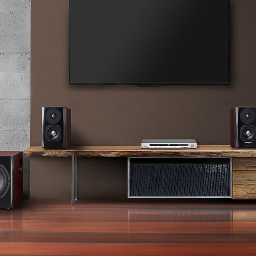 Edifier S350DB is a premium 2.1-channel speaker system designed to deliver robust, high-fidelity sound suitable for various environments, including computer rooms, living rooms, and dens. Combining modern wireless technology with classic aesthetics, it offers a versatile audio solution for music enthusiasts and gamers alike. At the heart of the system is an 8-inch subwoofer capable of producing deep bass frequencies down to 40Hz, powered by a 70W RMS amplifier. Connectivity is a strong suit of the S350DB, offering multiple input options including Bluetooth v4.1 with aptX support for high-quality wireless streaming, as well as optical, coaxial, and dual RCA inputs for wired connections. This flexibility allows seamless integration with various devices such as computers, TVs, gaming consoles, and smartphones.