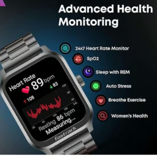 Fastrack Jupiter Retro smartwatch blends classic aesthetics with modern technology, featuring a 1.83-inch display for a clear and vibrant visual experience. With SingleSync Bluetooth Calling, users can conveniently make and receive calls directly from their wrist, ensuring seamless connectivity on the go.Designed for both style and functionality, this smartwatch includes smart features for enhanced usability, making it a reliable companion for daily wear. Whether for fitness tracking or smart notifications, the Jupiter Retro is a versatile choice.