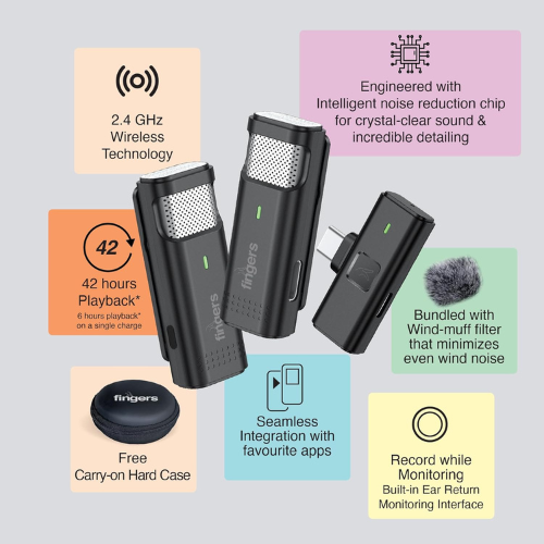 Fingers Duo-PhoneMic-TypeC Laveliar Wireless Microphone (Lapel/Collar Wireless Mic for Audio Recording, Vlogs & Live Streaming)