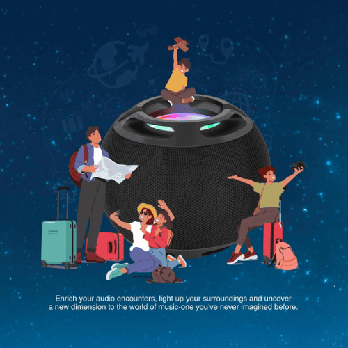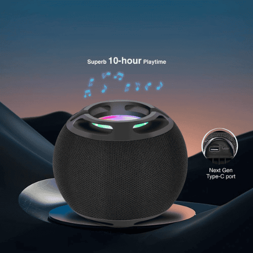 Fingers GlobeSound Portable Wireless Speaker delivers immersive audio with its 10W power output, providing clear sound and deep bass for an engaging listening experience. Its mesmerizing RGB lights add a dynamic visual element, enhancing the overall ambiance during music playback. The speaker offers up to 10 hours of playtime on a single charge, making it ideal for extended use. It supports multiple connectivity modes, including Bluetooth, AUX, and USB, and features convenient Type-C charging for fast and reliable power.