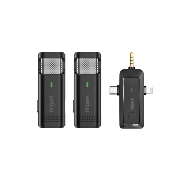 Capture professional-grade audio for recording and streaming right from your mobile with FINGERS PhoneMic-3C-2Mic Lavalier Wireless Microphone . Featuring dual mics and a 3-in-1 receiver (Lightning, Type-C & 3.5 mm), it connects seamlessly to smartphones, tablets, and cameras — no adapters, no fuss.