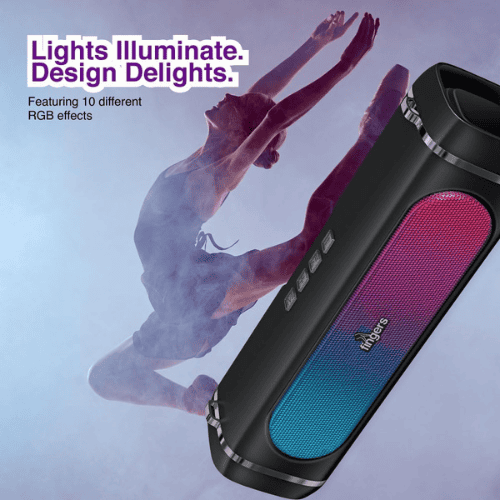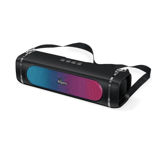 Fingers SoundPower-20 Bluetooth Portable Speaker delivers powerful 20W deep bass, providing an immersive audio experience for music lovers. Its mesmerizing RGB lights add a vibrant visual element, creating the perfect ambiance for parties or casual listening. With up to 9 hours of playtime on a single charge, it ensures long-lasting entertainment. The speaker offers Bluetooth connectivity for wireless streaming, while the built-in mic allows for hands-free calls.