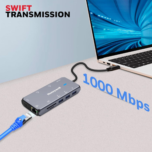 Honeywell 10-in-1 Type C Dock with Dual 4K HDMI,1GBPS RJ45 Ethernet Port, 2xUSB 3.0, 1xUSB 2.0 & Type C 3.0 PD100W, VGA port, SD & MicroSD Slot