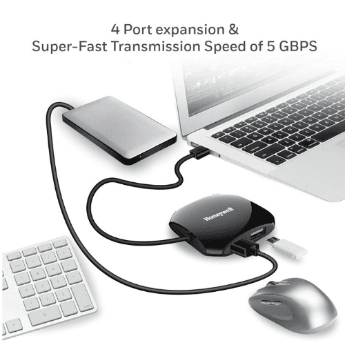Sale!Honeywell 4-in-1 Ultra Slim USB Hub 1xUSB 3.0 & 3 x USB 2.0 Ports, 30cms Cable, Data Transfer Speed Upto 5GBPS- Grey