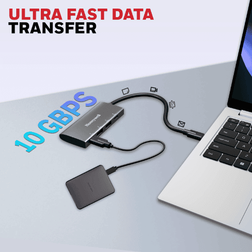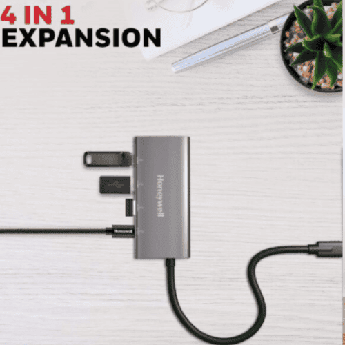 Honeywell Momentum Type C 4 In 1 Hub, 10Gpbs Transfer Speed, 2 Type C & 2 USB 3.2 Gen2 Port, Max Current 3000mA- Grey