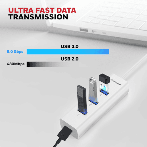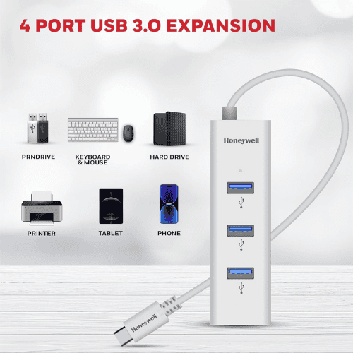 Honeywell Momentum Type C to 4Xusb 3.0 Hub, Super-Fast Transmission Speed 5Gbps- White