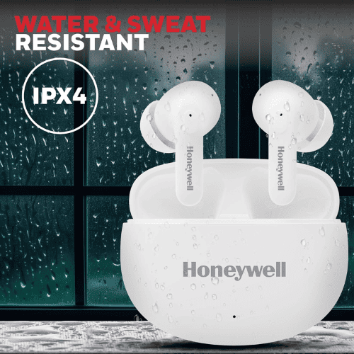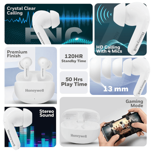 Honeywell Suono P2100 TWS Earbuds Bluetooth with 50H of Playtime, Type C Fast Charging, Bluetooth V5.3- White