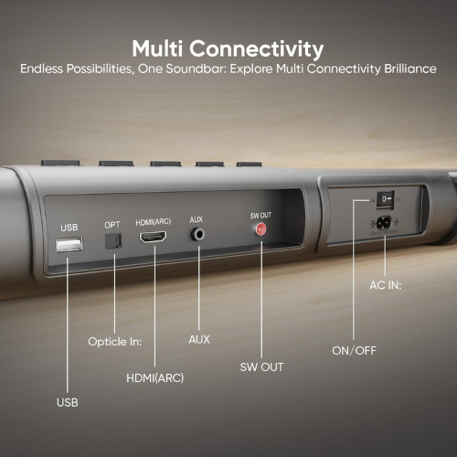 iGear Amplify 120W Bluetooth Soundbar is designed to deliver a powerful home theatre experience with immersive sound and deep bass. Equipped with a dedicated subwoofer, it produces rich HiFi audio that enhances both music and movie experiences. The soundbar comes with Bluetooth v5.3 for seamless wireless connectivity, along with multiple input options such as HDMI, Optical, USB, and AUX, making it versatile for different entertainment setups. Its smart control panel and included remote control allow easy operation and customization of sound settings.