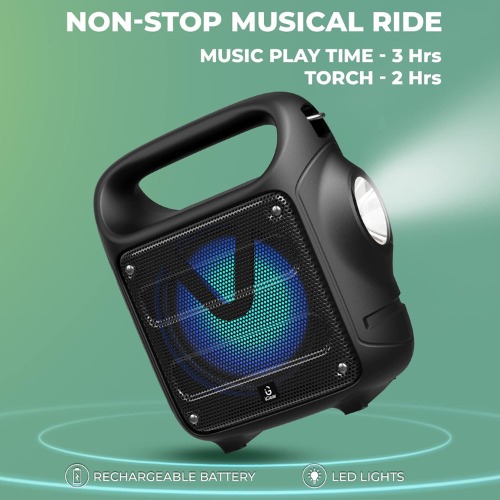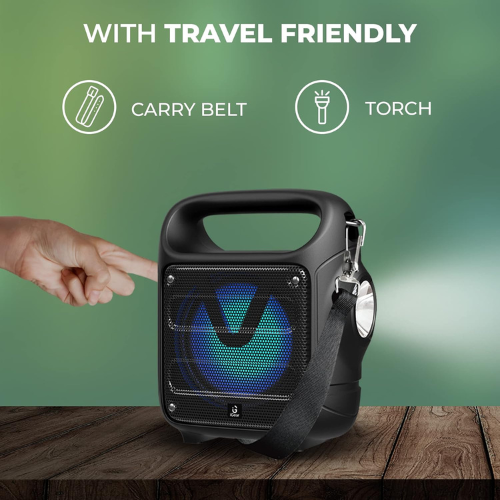 iGear Camo iG-1021 is a multifunctional 10W portable Bluetooth speaker designed for entertainment on the go. It delivers clear and powerful sound while offering a range of features that make it more than just a speaker. Equipped with a corded microphone, it can be used for karaoke, announcements, or small gatherings. The speaker supports USB drives and TF/SD cards and even has a built-in FM radio for added versatility. Its TWS function allows pairing with another compatible speaker for a stereo experience. The rechargeable battery ensures long-lasting playback, while the built-in powerful torch adds practical utility for outdoor use.