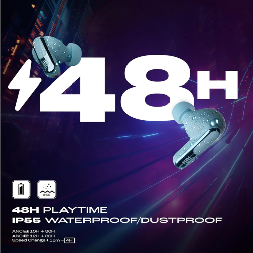 JBL  Live  Beam  3 are premium true wireless ANC earbuds that stand out with their innovative Smart Charging Case featuring a built-in touchscreen display. This unique feature allows you to control playback, adjust ANC and EQ settings, switch devices, and even use your device’s photos as the case background—all without needing your phone. These earbuds combine JBL’s signature sound—complete with Hi‑Res Audio support (LDAC/LC3)—with immersive Spatial Audio and fully adaptive ANC. Their 10 mm drivers deliver deep, rich bass, and tuning is further enhanced with Personi‑Fi 3.0, which customizes audio based on your hearing profile via the app. Battery life is outstanding: up to 12 hours per charge (with ANC off), 10 hours with ANC on, supplemented by 36 hours in the case—48 hours total. A quick 10‑minute charge provides an extra 4 hours of playback, and wireless Qi charging adds convenience.
