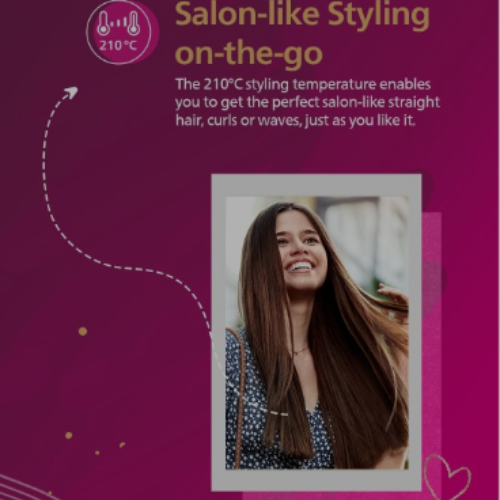 Philips HP8302/06 Selfie Hair Straightener Minimized Heat Damage with SilkPro Care -Black