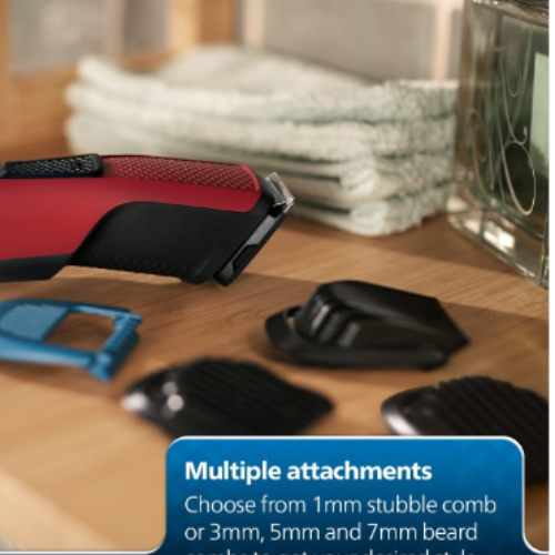 Philips BT1235/18 Skin Protect Cordless Men’s Beard Trimmer with Self-Sharpening Blades – Red