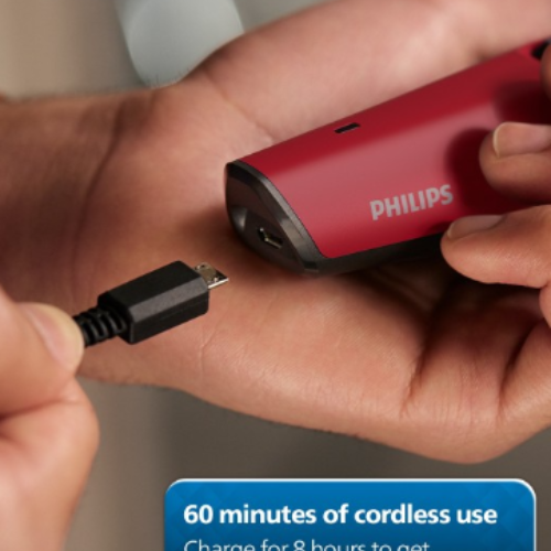 Philips BT1235/18 Beard Trimmer in bold red is designed for comfortable and reliable grooming with SkinProtect technology that ensures a smooth trimming experience while being gentle on the skin. It features self-sharpening blades that remain sharp for long-lasting performance and precise results. Offering cordless convenience, the trimmer is easy to use and recharge, making it ideal for both home and travel. With its durable build and hassle-free maintenance, it provides consistent performance without the need for oiling.