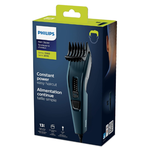 Philips HC3505/15 Grooming Kit is designed for precise and efficient hair trimming, making it suitable for both home haircuts and personal grooming. It comes with 13 length settings that allow you to customize your haircut with accuracy, ensuring the style you want every time. The trimmer is equipped with self-sharpening steel blades that stay sharp for longer, delivering consistent cutting performance with minimal maintenance. Its ergonomic design in a blue finish makes it comfortable to hold and easy to maneuver for even results. While it does not offer cordless runtime, it operates efficiently when plugged in, ensuring uninterrupted grooming sessions.
