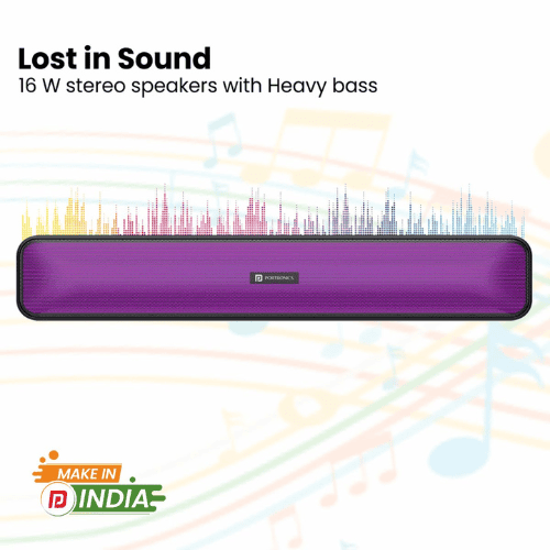 Portronics Radian Bluetooth Stereo Soundbar 16W with Multicolour LED Lights (Black)