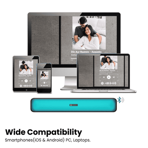 Portronics Radian is a stylish 16 W Bluetooth stereo soundbar that pairs dynamic audio performance with lively multicolour LED lighting to enhance your music and entertainment experience. Equipped with Bluetooth 5.0, it allows seamless wireless streaming, while support for AUX, USB flash drives, Micro‑SD cards, and integrated FM radio offers multiple playback options. Its built-in microphone enables hands‑free calling, so you can manage calls directly through the speaker without reaching for your phone. This compact yet powerful device delivers up to five hours of playback per charge, thanks to its efficient internal battery, and recharges conveniently via Type‑C, making it suitable for daily use in bedrooms, small living spaces, or during casual gatherings .