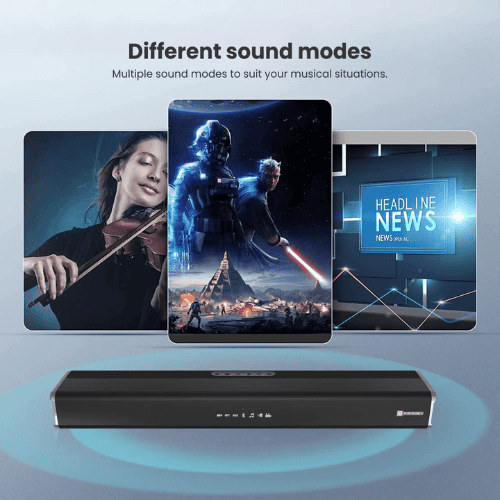 Portronics Sound Slick 5 (also called Sound Slick V) is a sleek 80 W Bluetooth soundbar designed to deliver a cinematic audio experience without needing an external subwoofer. Housed in a robust matte-black chassis with a scratch-resistant, sand-grain finish, it features full wireless Bluetooth 5.0 connectivity alongside USB, 3.5 mm AUX, and optical inputs, offering versatile playback and easy setup. A crisp LED display and included remote make navigation intuitive, while the lack of an external woofer contributes to its compact form factor. With a standard one-year warranty, the Sound Slick 5 is a solid pick for users seeking a stylish, versatile, and budget-friendly soundbar that punches above its weight—especially in setups where space is limited and audio clarity is valued over deep bass.