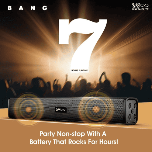 Walta Elite Bang 10W Wireless Bluetooth Sound Bar Speaker with 7-Hour Playtime- Black
