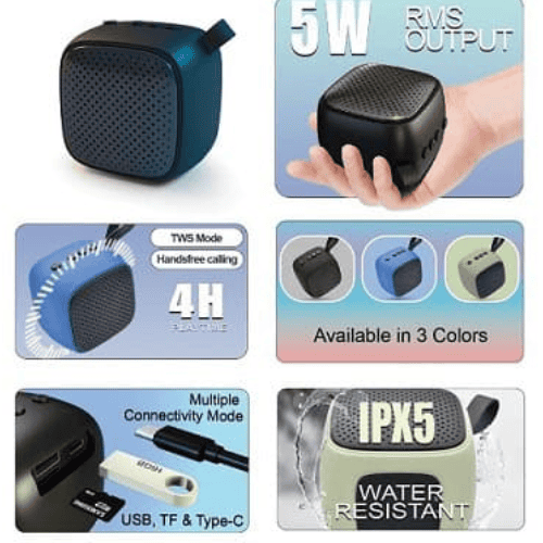 Walta Elite Brio 1151 is a compact and versatile Bluetooth speaker that combines portability with robust features, making it an ideal choice for on-the-go music enthusiasts. Key Features:- 5W RMS Output: Delivers clear, balanced audio suitable for personal listening and small gatherings. Multiple Connectivity Options: Supports Bluetooth 5.3, USB, and TF card input, allowing various playback options for flexibility. Type-C Charging: Efficient Type-C charging minimizes downtime, making it easy to recharge on the go. Water Resistant: Designed to withstand light splashes, ideal for outdoor and on-the-go use.