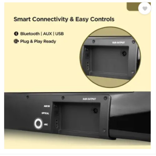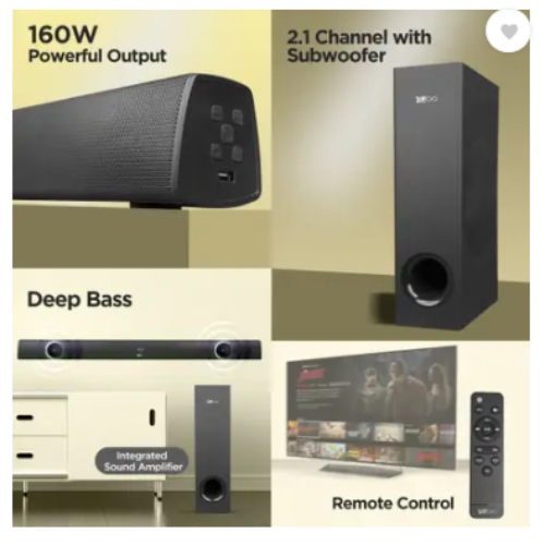 Walta Elite Brio-1250 is a high-power Bluetooth soundbar designed to deliver cinematic audio in a home setup. It outputs 160W RMS, which gives it considerable audio heft, especially with its included subwoofer, making it capable of producing strong bass and immersive sound that outperforms typical small soundbars. Connectivity is modern with Bluetooth 5.3, enabling wireless streaming from phones, tablets or other gadgets, with a wireless range of about 10 meters. Besides Bluetooth, it offers multiple wired/audio-input modes such as AUX, USB, optical, and HDMI in many variants to let you hook up TVs, gaming consoles, or other media devices. The design is relatively large and sturdy, with a separate subwoofer for deeper bass, often placed off the soundbar to enhance low-frequency performance. You also get a remote control for convenience. The soundbar supports stereo channel configuration—providing left/right separation along with bass reinforcement from the subwoofer.