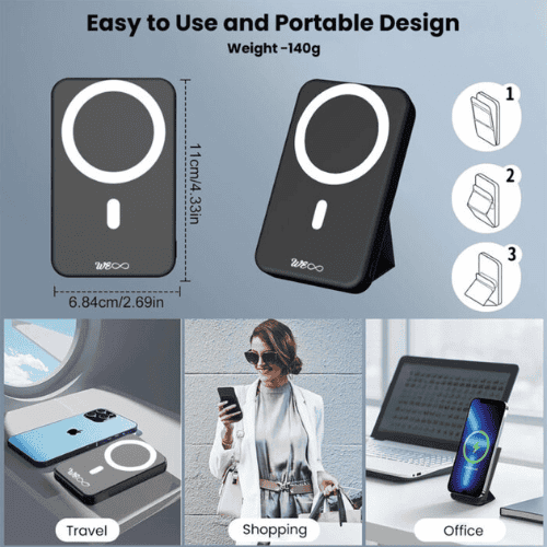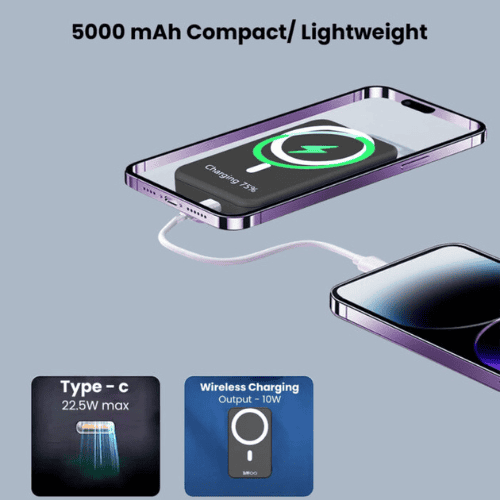 Walta Elite Buddy 5 Power Bank Wireless Power Bank is sleek and portable in design and can be carried easily in one’s pocket. Simple aesthetic design that enjoys the trust of Hero Group. The Wireless Power Bank has 5000 mAh battery potential that gives you the recharge that you need to allow your battery to last all day. The Wireless Power Bank has a strong holding power and is designed so that it fits snugly on your iPhone and allows you to use it while it’s charging. Its Features- MagSafe Compatible: This Power Bank gives you Seamless Alignment and Fast Wireless Charging Every Time. A Powerful Magnetic Connection Keeps Your iPhone Safely in Place, Whether Stationary or On-The-Go. Standards: In accordance with related standards and to comply with related requirements, the battery capacity and rated capacity of the power bank are marked on the power bank. Battery capacity refers to the capacity of the battery or battery group of the power bank. Rated capacity refers to the output capacity of the power bank.