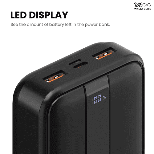 Walta Elite Buddy Pro Digital Advance 10000 Powerbank 10000mAh battery with LED Display, 22.5W, Two Inputs Micro, Type C- Black