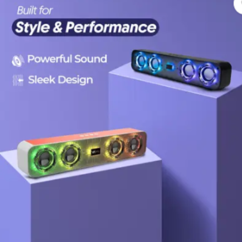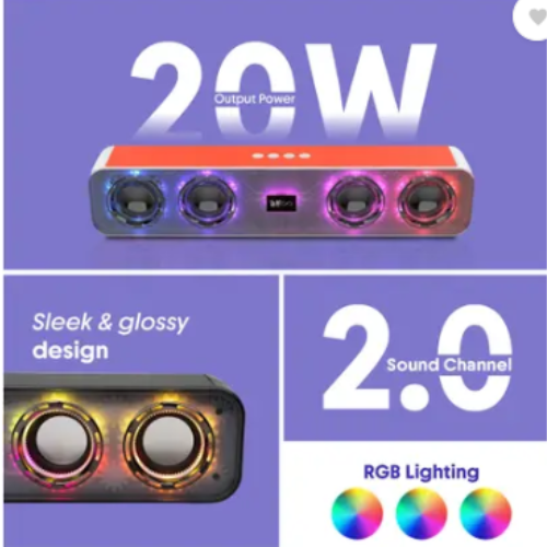 Walta Elite Crystal 20W Bluetooth Soundbar in black is designed for enhancing your TV, laptop, or music playback without needing a full speaker system. Its 20-watt RMS output gives it enough power to deliver richer sound than built-in device speakers, improving clarity in dialogue and boosting bass presence for music or movies. With Bluetooth connectivity, you can stream audio wirelessly from phones, tablets, or computers, while AUX or USB inputs may also be available for wired sources. Visually, the Crystal soundbar likely features LED or RGB lighting accents, which are common in this lineup, adding an ambient element especially in low light or entertainment settings. The build is compact and intended for tabletop or shelf mounting under a TV; its black finish helps it blend with most home entertainment furniture. In terms of usage, battery-powered or plug-in operation may depend on the model; likely this is a plugged device (especially for soundbars), so continuous mains power or external adapter would be standard.