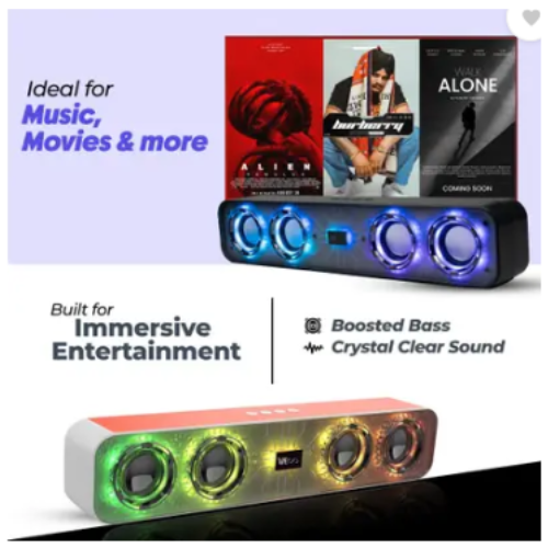 Sale!Portronics Radian Bluetooth Stereo Soundbar 16W with Multicolour LED Lights (Black)