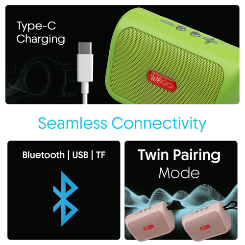 Walta Elite Melody Portable Bluetooth Speaker, 8W, TWS Support, 5 Hours Playback- Light Green