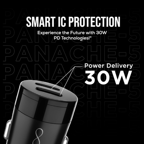 Walta Elite Panache 6 30W Car Charger With Dual Output, Super Fast Charging Without Cable -C/PD (Black)