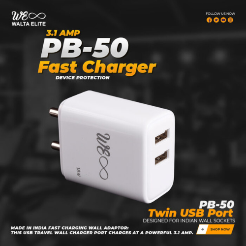 The Walta Elite PB50 Charger is a versatile and efficient charging solution designed to power iOS and Android devices quickly and safely. Featuring a dual-port USB design, it allows you to charge two devices simultaneously, making it ideal for users who need to power multiple gadgets at once, such as smartphones and tablets. Engineered for fast charging, the WALTA ELITE PB50 delivers efficient power, significantly reducing the time required to reach full battery capacity compared to standard chargers. Its robust build and reliable performance make it a perfect choice for both everyday use and travel.