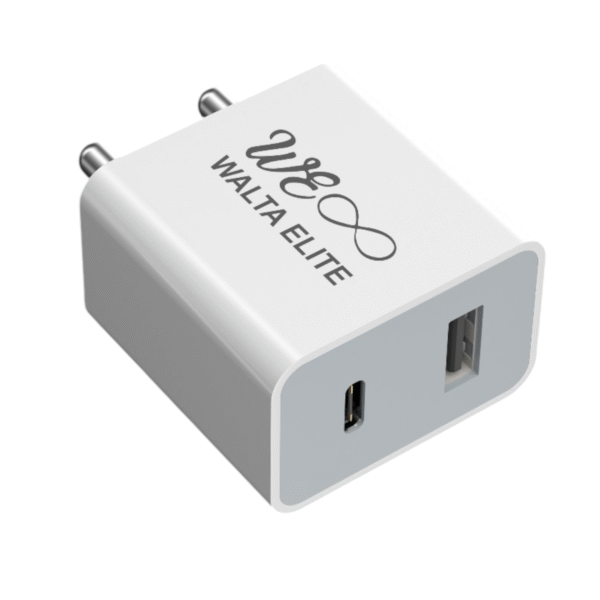 Walta Elite PB30 Charger 20W USB & Type-C Dual Output Charger, USB to Micro V8 Cable Included (White)
