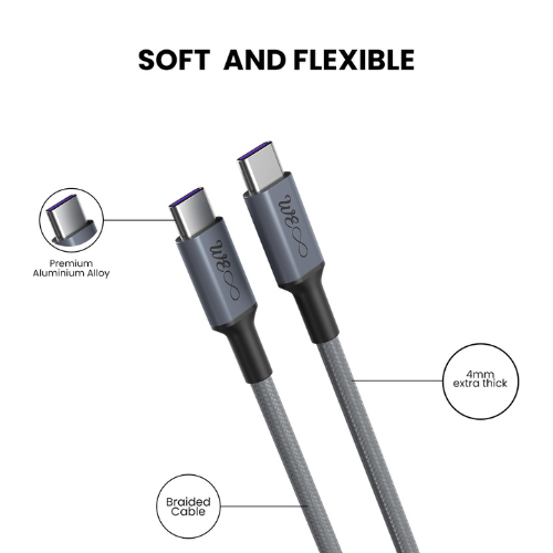 Walta Elite Real Plus Pro Type-C To Type-C Fast Charging Braided Cable Charges Upto 5 Amp- Grey