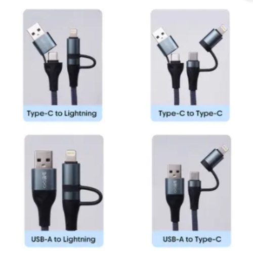 Walta Elite Wave 1 Pro Advance 4-in-1 Fast Charging Data Cable, 65W, Type-C, Lightning, Micro USB, 1Mtr (Compatible with iPhone, Type-C devices, Blue)