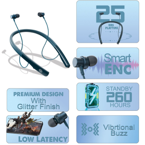 The Walta Elite YOYO Neckband is a premium wireless headset designed for all-day comfort and exceptional audio performance. It features a low latency mode that ensures synchronized audio and video, providing smooth experiences for gaming, streaming, and video calls. With Smart ENC (Environmental Noise Cancellation), it minimizes background noise for crystal-clear voice quality during calls and enhanced music playback. The touch-sensitive controls with vibrational feedback make managing calls, volume, and playback intuitive and effortless. Offering up to 25 hours of playtime on a full charge, the YOYO Neckband delivers long-lasting performance for entertainment, work, or workouts.