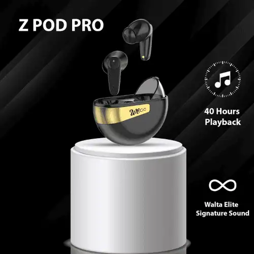 WALTA ELITE Z Pod Pro Wireless Earbuds are designed for users who prioritize seamless connectivity, excellent audio quality, and comfort in a compact package. Featuring Bluetooth 5.3 technology, these earbuds provide a stable, fast, and reliable wireless connection, ensuring smooth and lag-free music playback, calls, and video streaming. Key Features:- Bluetooth 5.3: Advanced Bluetooth version for a stable and fast wireless connection. Audio Performance: Balanced audio with clear highs, rich mids, and deep bass for an immersive experience. Water Resistance: IPX4-rated, protecting against sweat and water splashes, suitable for workouts and outdoor activities. Battery Life: Extended battery life with a compact charging case that offers multiple recharges for all-day use.