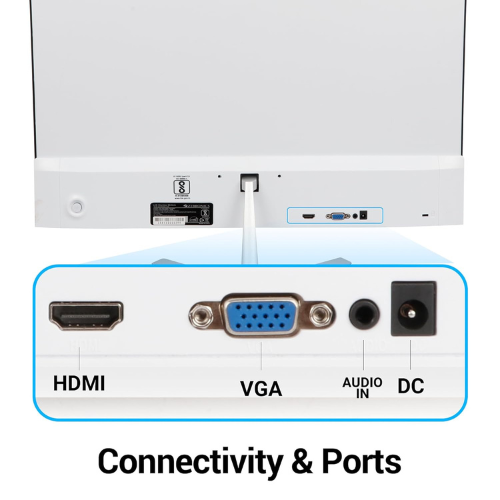 Zebronics A24FHD LED Monitor 24inch (60.96cm), 250 nits, 100Hz, Slim Design, FHD, 1080p, Wall Mountable, HDMI, VGA- White