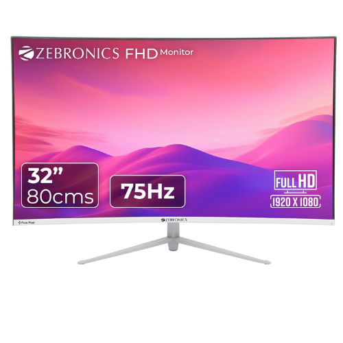 Zebronics AC32FHD 75hz LED Monitor 32 inch (81.28cm),1800R Curved Wide Screen, Wall Mountable, VGA, HDMI, Ultra Slim Bezel- White