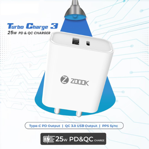 Zoook Turbo Charge 3 Mobile Charger 25W QC & PD Charger- White